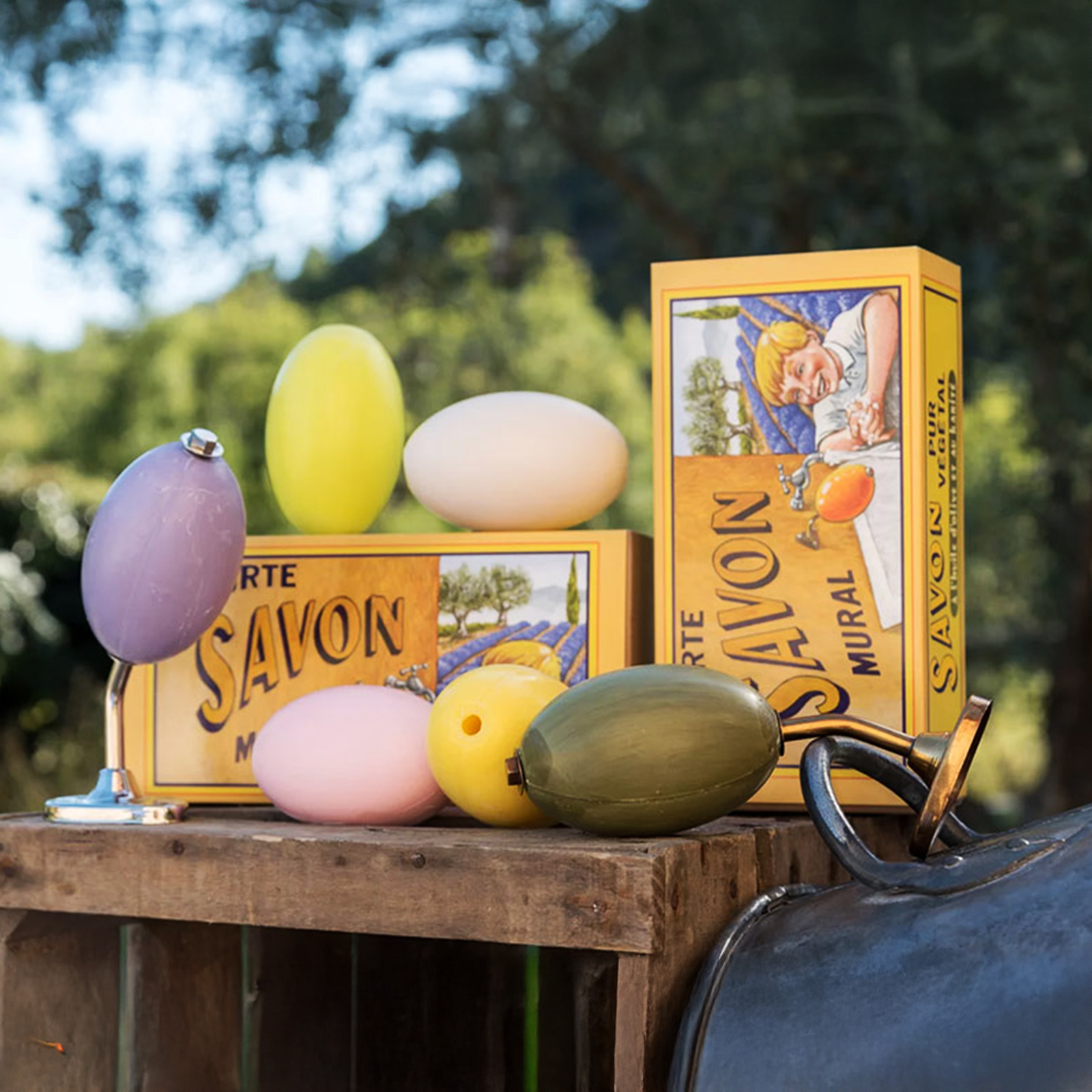 Chaque support est vendu avec un savon rotatif enrichi en beurre de karité BIO et en huile d’olive de Nyons, aux propriétés nourrissantes et protectrices.